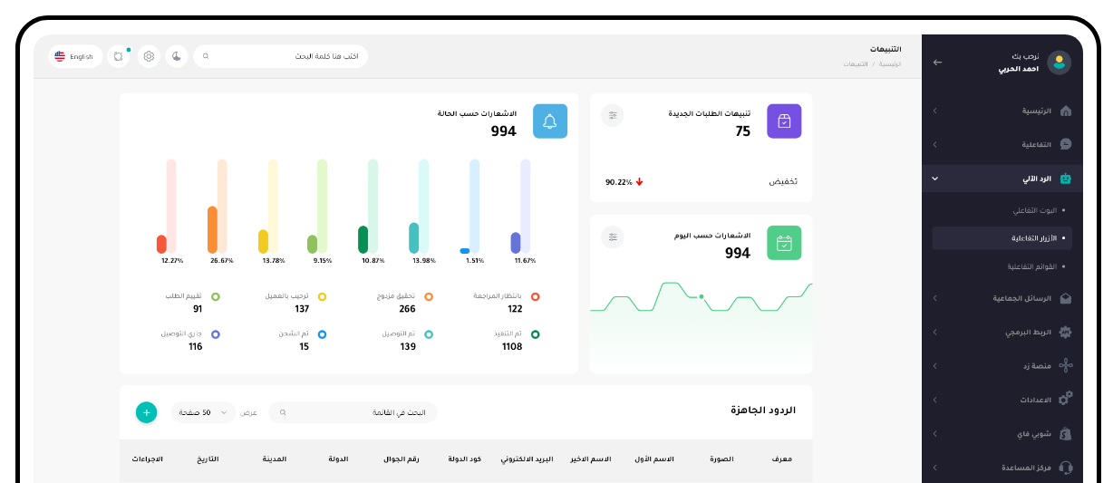 • تقارير و إحصائيات شاملة ومباشرة.